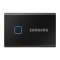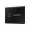 Samsung TOUCH - T7 MU-PC2T0K/WW - Black - 2 TB Portable Solid State Drive - External - PCI Express NVMe - Black. Gaming Console Device Supported - USB 3.2 (Gen 2) Type C - 256-bit Encryption Standard - 3 Year Warranty; Fingerprint sensor and password protection - AES 256 bit hardware encryption; Performance of up to 1050 MB/s, up to 9.5x faster than external HDD; NVME interface and compatible with USB 3.2 (Gen 2, 10Gbps). Keep your private files secure without sacrificing convenience. The built-in security options on the T7 Touch utilize the AES 256-bit encryption. and give you the option of unlocking with a touch of your finger or with a password. The T7 Touch features an LED square that illuminates to keep you informed of what your SSD is doing at a glance. Choose from classic black or stylish silver, in three capacities to suit your needs: 500GB, 1TB, or 2TB. Pocket-sized and slim, the lightweight body comes standard on the T7 Touch. Roughly the size of a credit card and weighing in at 58 grams, the solid aluminum unibody construction fits comfortably in the palm of your hand. The T7 Touch comes embedded with upgraded software for PCs and Macs to help you set up a password and fingerprints and get the latest firmware updates. You can also download the mobile app for Android smartphones and tablets. Access your files anytime, anywhere. The T7 Touch is compatible with PC, Mac, Android devices, gaming consoles, and more. Included in the box are USB Type C-to-C and Type C-to-A cables for added convenience.